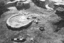 bell shaped pits cut into a building of mud brick. The first phase of the