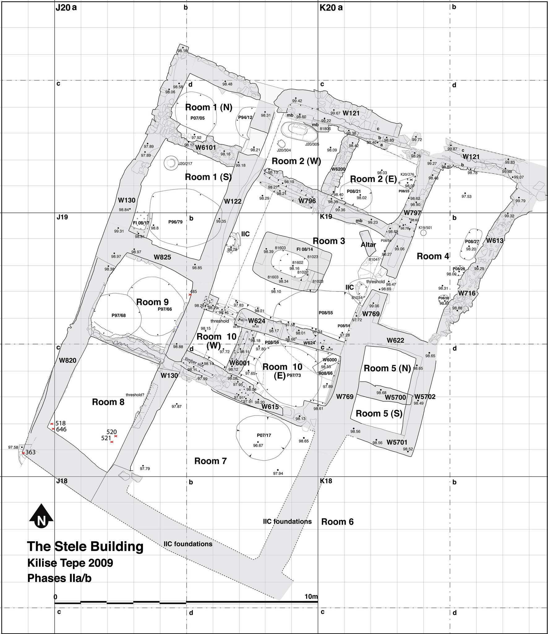 This building represents a new departure, with a completely different alignment and layout, approximately 18m square, with rooms arranged around a central space. In the 1990s we had fully exposed the IIc phase of the building and its dual functions of storage and cultic activity seem well established, with the stele and altar in the central space, and storage jars in some of the other rooms. Soundings below the floor had established that this IIc phase was a re-foundation of the building on very similar lines to its initial construction, but further work was needed to expose in detail the layout and occupation sequence of this original building. Our work in 2007-2009 has completed this task. It transpires that the overall plan with a central space was constant, but some of the longer rooms in the IIc phase correspond to two smaller rooms in the earlier plan. Clear evidence was recovered for a gradual rise in the floor levels of some rooms during the IIa/b phases, for the use of some rooms for storage, and for symbolic foundation deposits within the fabric of the building. This, therefore, reinforces our interpretation of the Stele Building's dual function, and helps with its chronology. Initial results from 14C analysis of well stratified samples from the early phases of the building tend to confirm our suspicions that the original foundation had taken place well before the events at the end of the Hittite empire, conventionally placed around 1190 BC. An additional bonus of the further work in the Stele Building was the retrieval of a few ceramic vessels, including our first full profile of the large square-rimmed jars which now make their first appearance in the ceramic repertoire, in sharp contrast to the sober monochrome wares associated with Level III. The red-painted patterns on these jars herald a much more diverse use of paint on other shapes. From the Stele Building itself comes a painted lid, and from a contemporary storage pit in the Western Courtyard a jar with spout and basket-handle.Although first well described at Kilise Tepe, it now emerges that the red-painted jars are present at the major sites of Mersin and Tarsus on the Cilician coast, presumably also well before the fall of the empire around 1190 BC. This raises the question of what caused this change. At Kilise Tepe we have been inclined to associate it with a change in the political scene. The establishment of the semi-independent kingdom of Tarhuntassa would presumably have removed direct Hittite administration and military control from these territories, along with any material correlates, which could include the standardized ceramic repertoire.